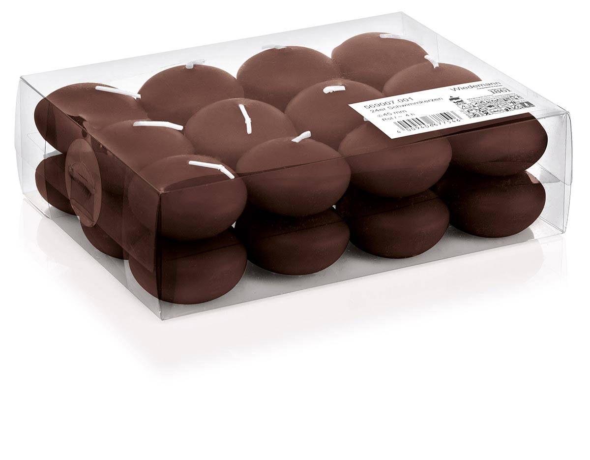 24er Set Schwimmende Kerzen ORNELLA, schokobraun, Ø4,5cm, 4h