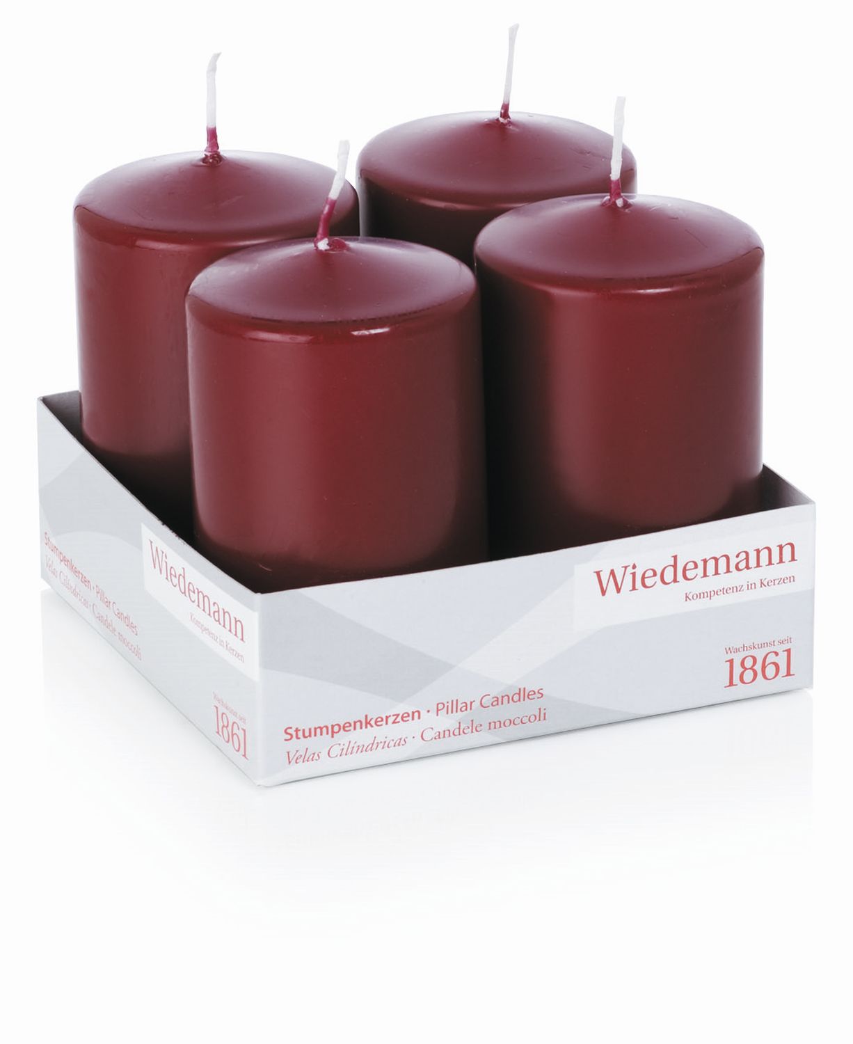 Adventskranz Stumpenkerzen JENARO, 4 Stück, bordeaux, 10cm, Ø6cm, 33h - Made in Germany