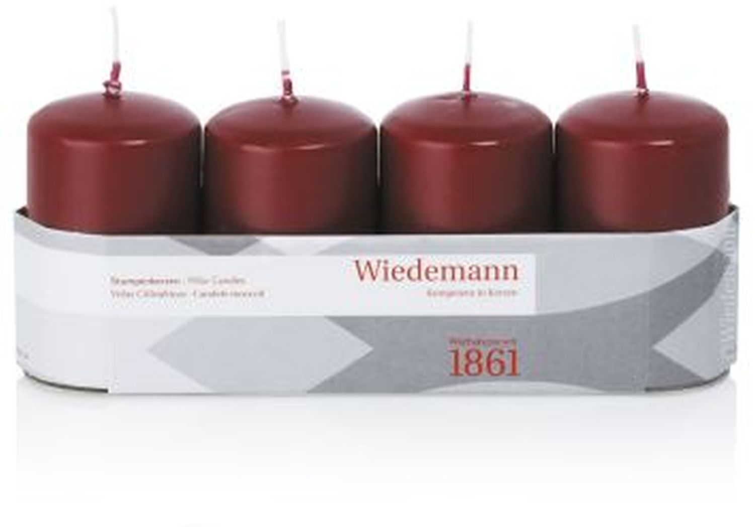 Adventskranz Stumpenkerzen JENARO, 4 Stück, bordeaux, 8cm, Ø5cm, 18h - Made in Germany