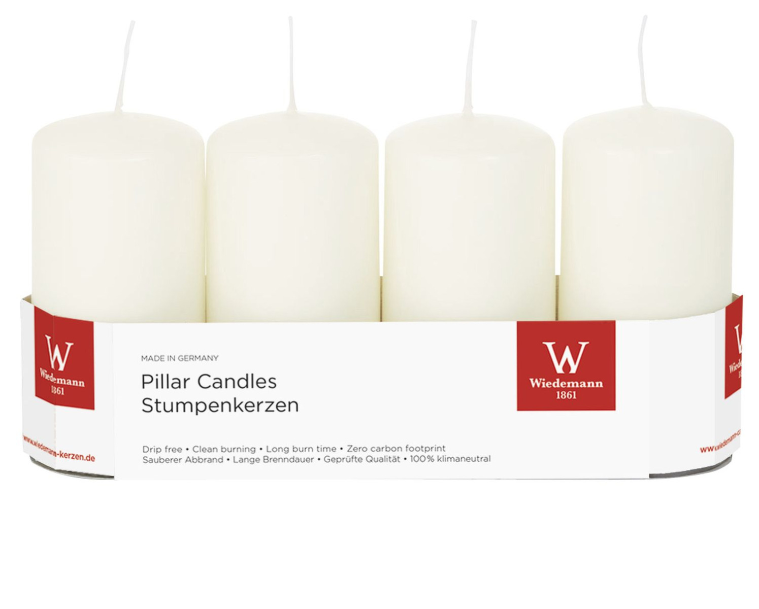 Adventskranz Stumpenkerzen JENARO, 4 Stück, elfenbein, 10cm, Ø5cm, 23h - Made in Germany