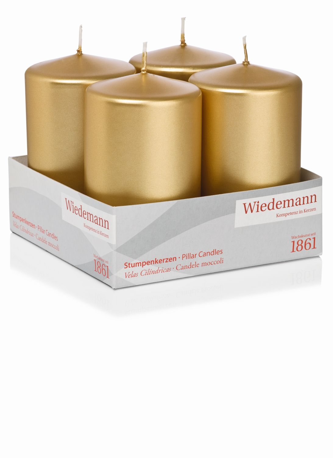 Adventskranz Stumpenkerzen JENARO, 4 Stück, gold, 10cm, Ø6cm, 33h - Made in Germany