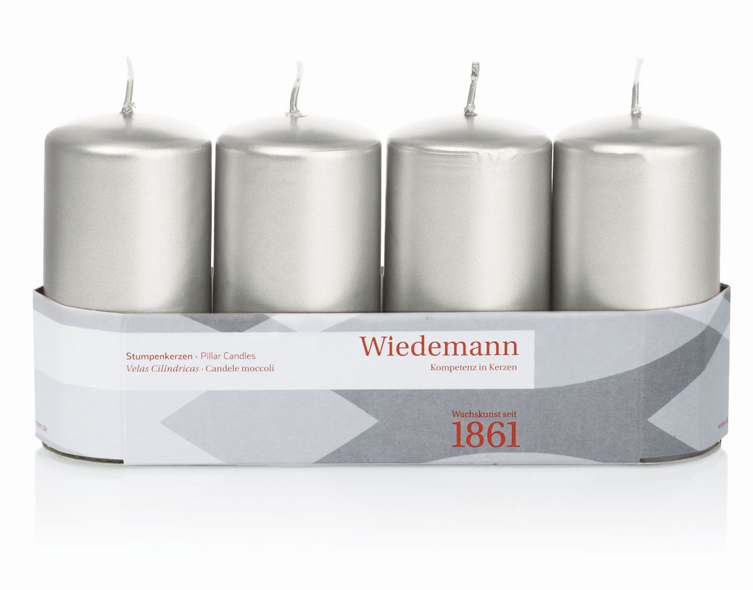 Adventskranz Stumpenkerzen JENARO, 4 Stück, silber, 10cm, Ø5cm, 23h - Made in Germany