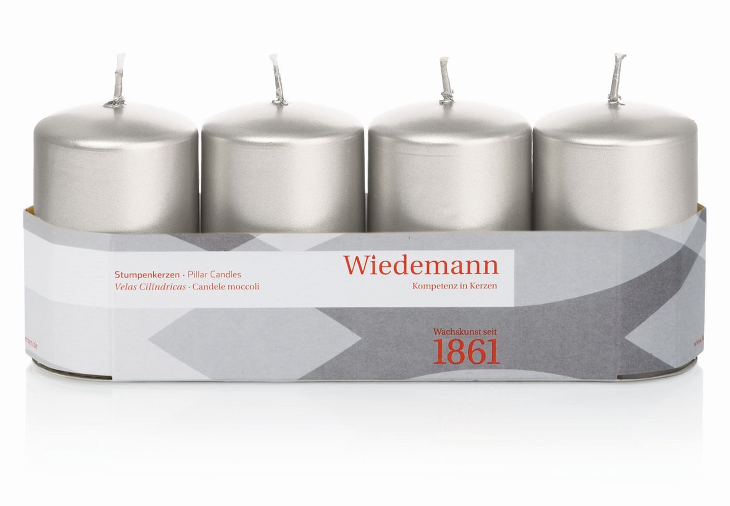 Adventskranz Stumpenkerzen JENARO, 4 Stück, silber, 8cm, Ø5cm, 18h - Made in Germany