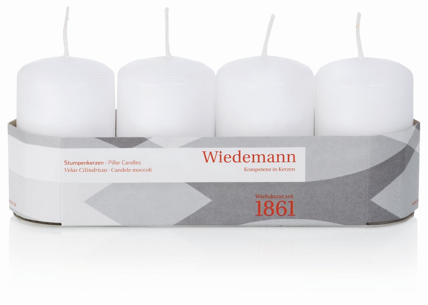 Adventskranz Stumpenkerzen JENARO, 4 Stück, weiß, 8cm, Ø5cm, 18h - Made in Germany