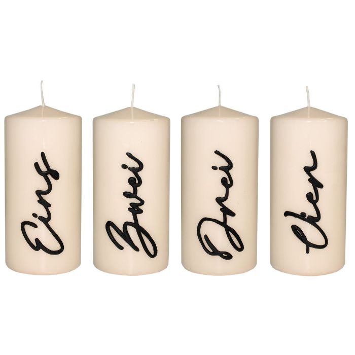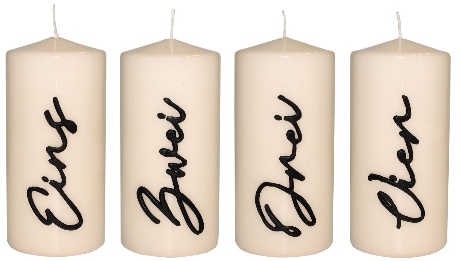 Adventskranz Stumpenkerzen PAULINO mit Zahlen, 4 Stück, creme-hochglanz, 15cm, Ø7cm, 63h - Made in Germany