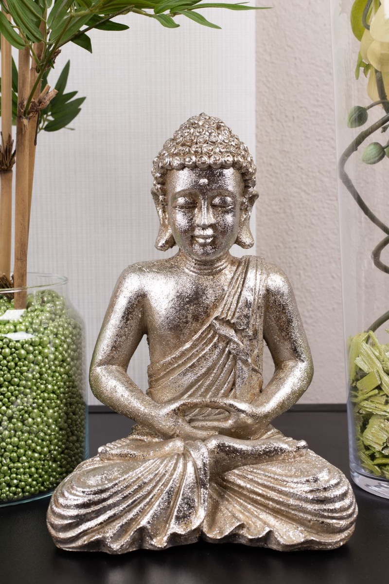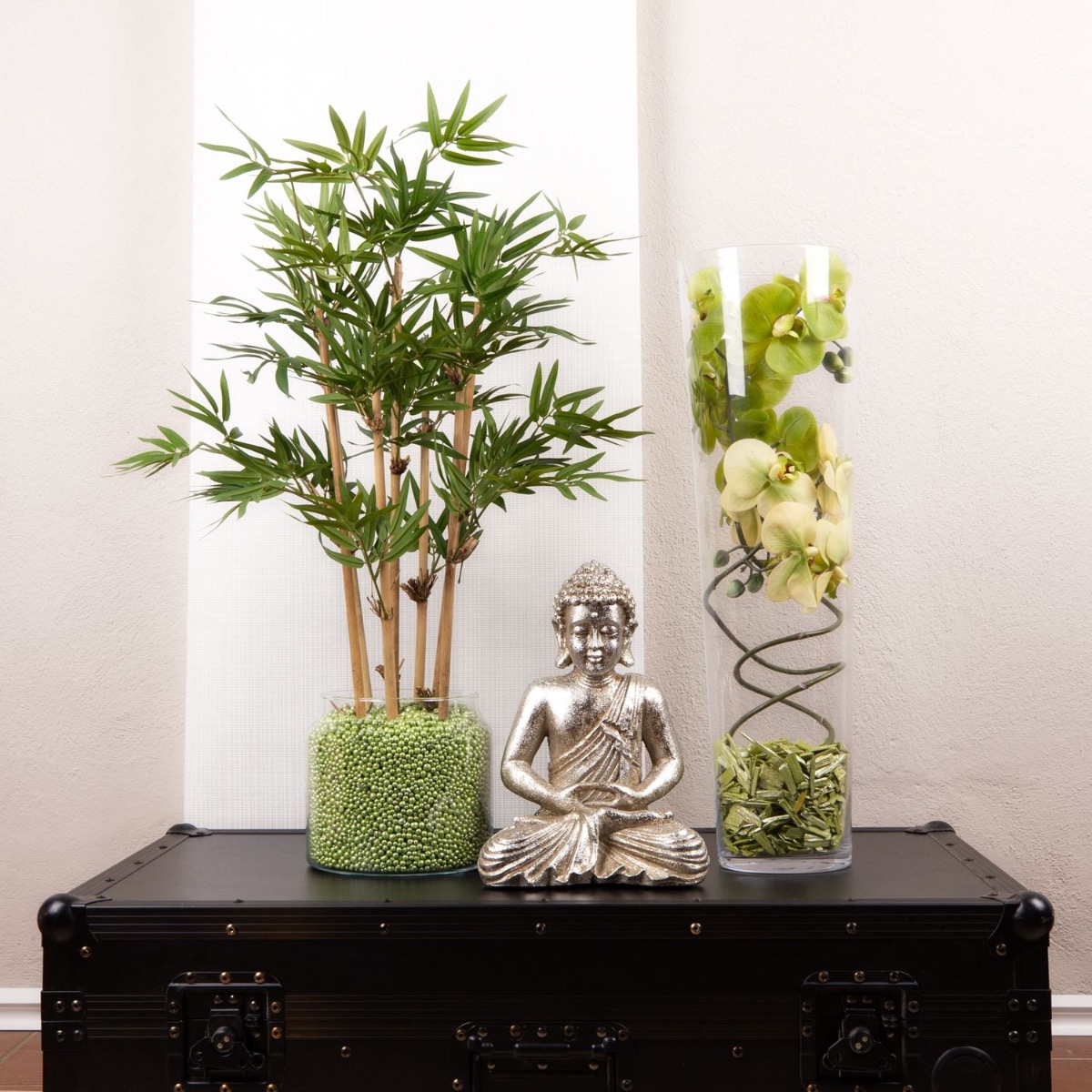 Grün als Ruhepol! Nicht nur Pandas lieben Bambus. Was für die gemütlichen Bären ein Festtagsschmaus ist, ist für uns Menschen ein Blickfang, der Ruhe und Zufriedenheit ausstrahlt. Dieser asiatische Look passt super in jeden Spa-Bereich. Und auch aus Ihrem Bad zu Hause zaubert er eine Oase der Entspannung. Der silberne Buddha im Lotussitz verkörpert mit seiner Handhaltung, dem Dhyana Mudra tiefe Meditation und Versenkung in die eigene Körpermitte. Wer kann da nicht entspannen? Shop the Look!