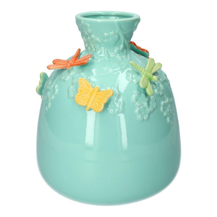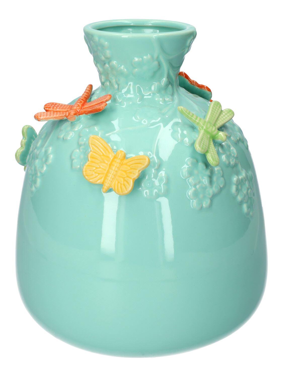 Ballonflasche KIMANA aus Keramik, 3D Schmetterlinge Libellen, blau-gelb-grün-orange, 22,5cm, Ø19cm