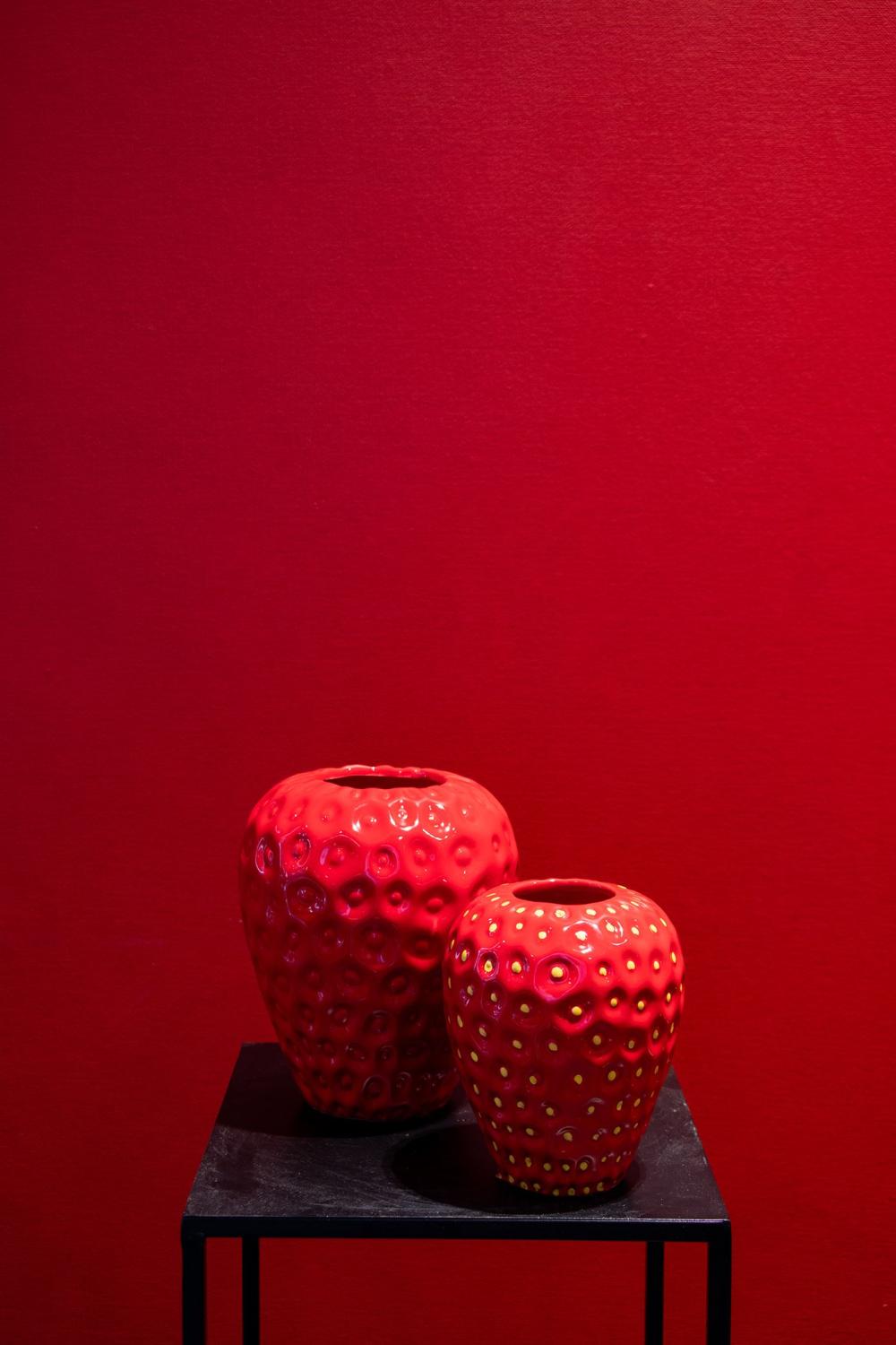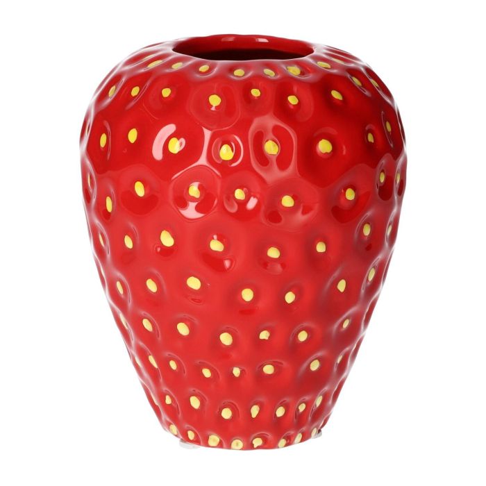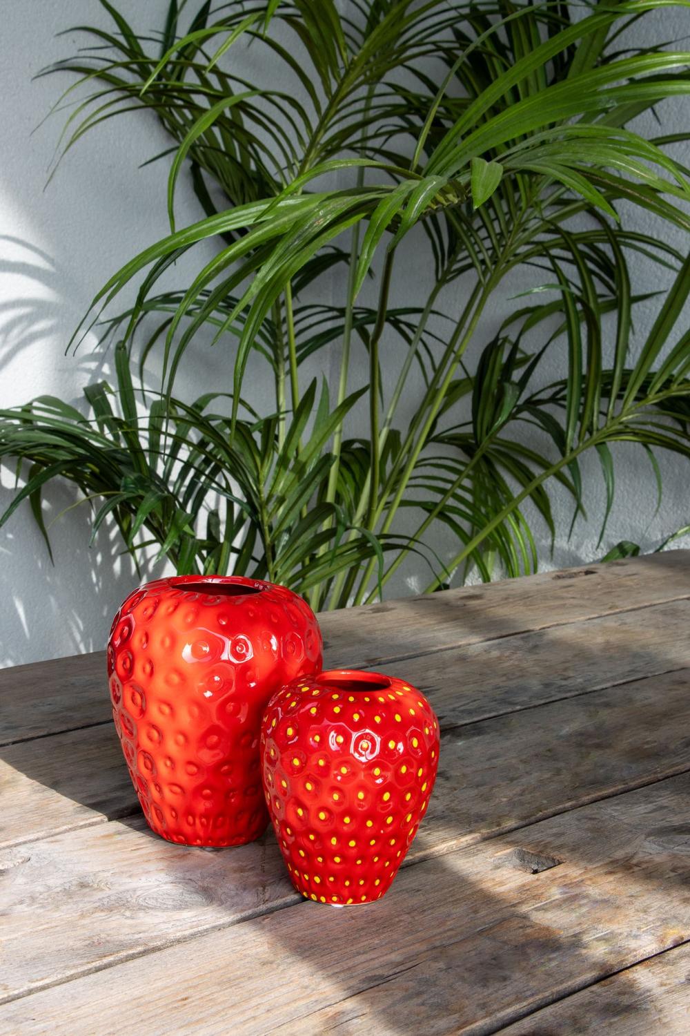 Bauchige Keramikvase Erdbeere ESBERA, Einkerbungen, rot-gelb, 14cm, Ø11,6cm