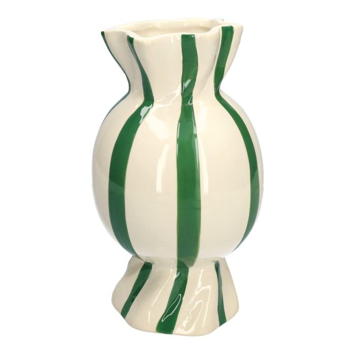 Bauchige Stielblumenvase Bonbon AMIEL aus Keramik, mit Längsstreifen, grün-weiß, 24,7cm, Ø14cm