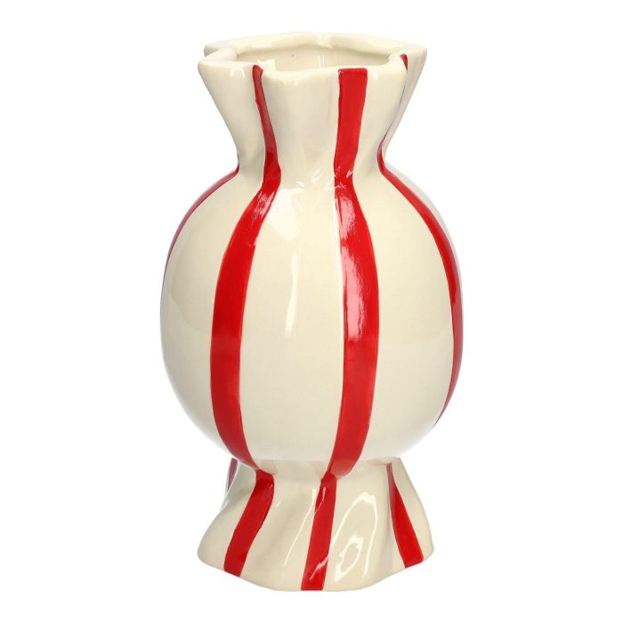 Bauchige Stielblumenvase Bonbon AMIEL aus Keramik, mit Längsstreifen, rot-weiß, 24,7cm, Ø14cm