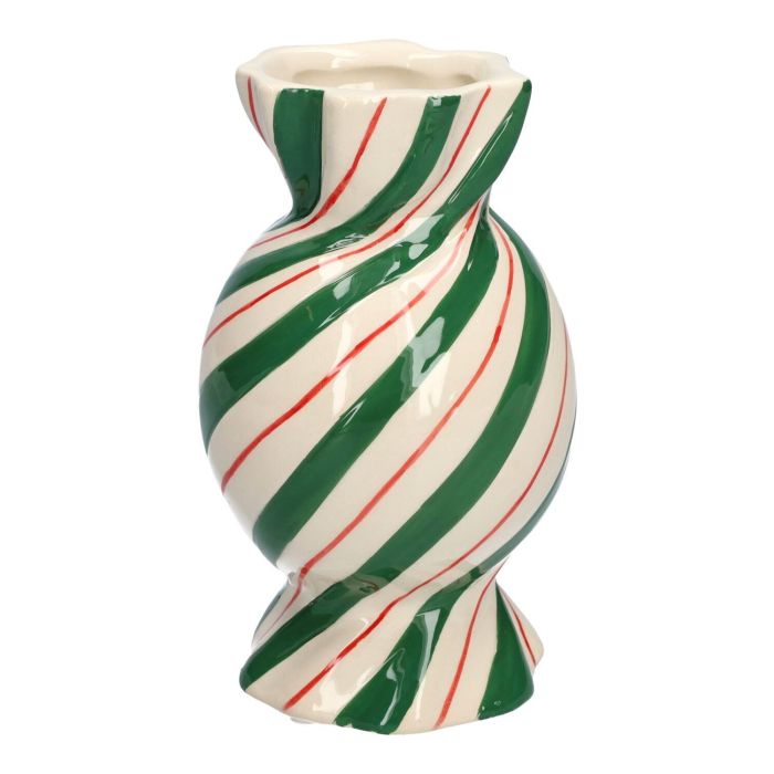Bauchige Stielblumenvase Bonbon AMIEL aus Keramik, mit schrägen Linien, grün-weiß-rot, 15cm, Ø8,5cm