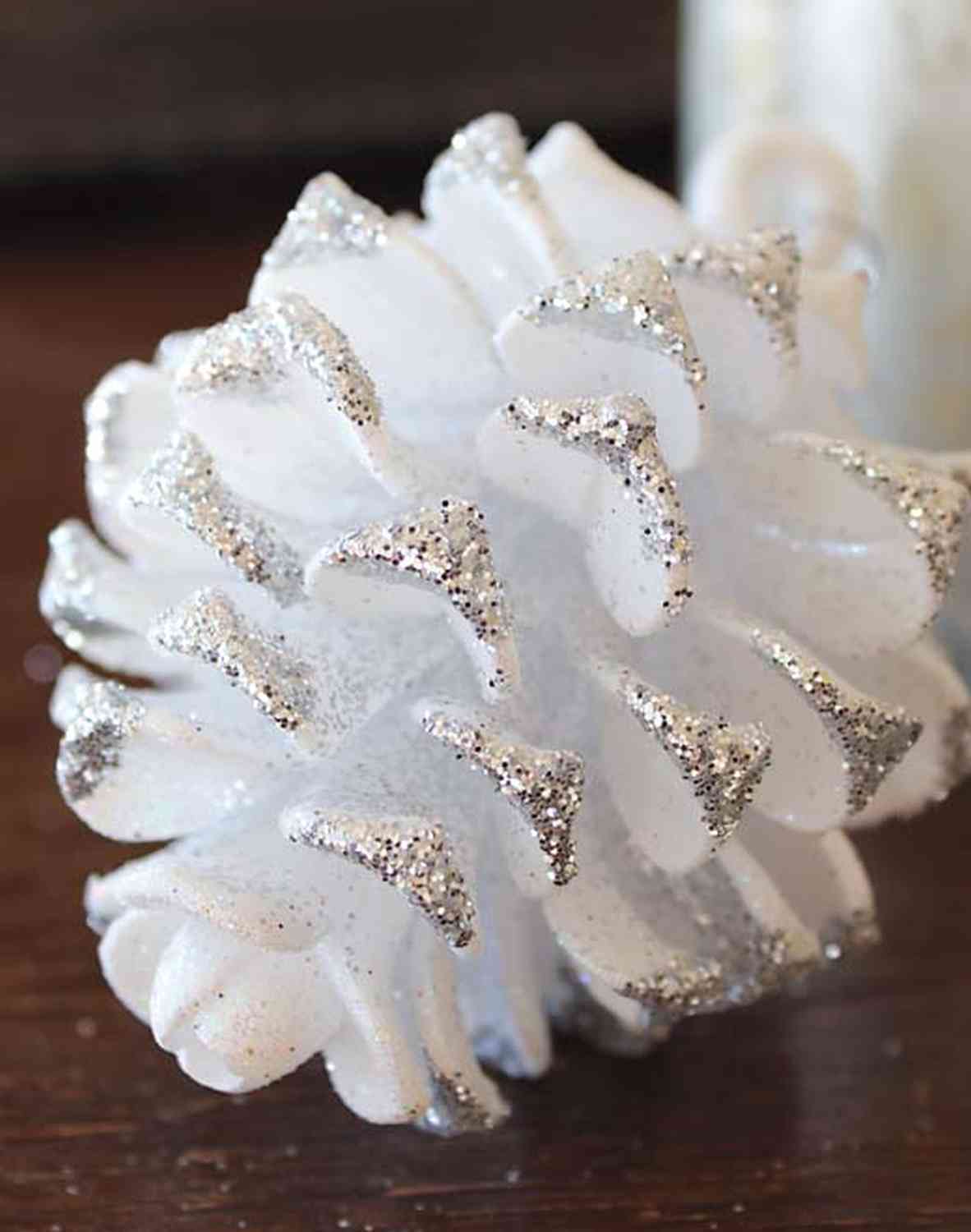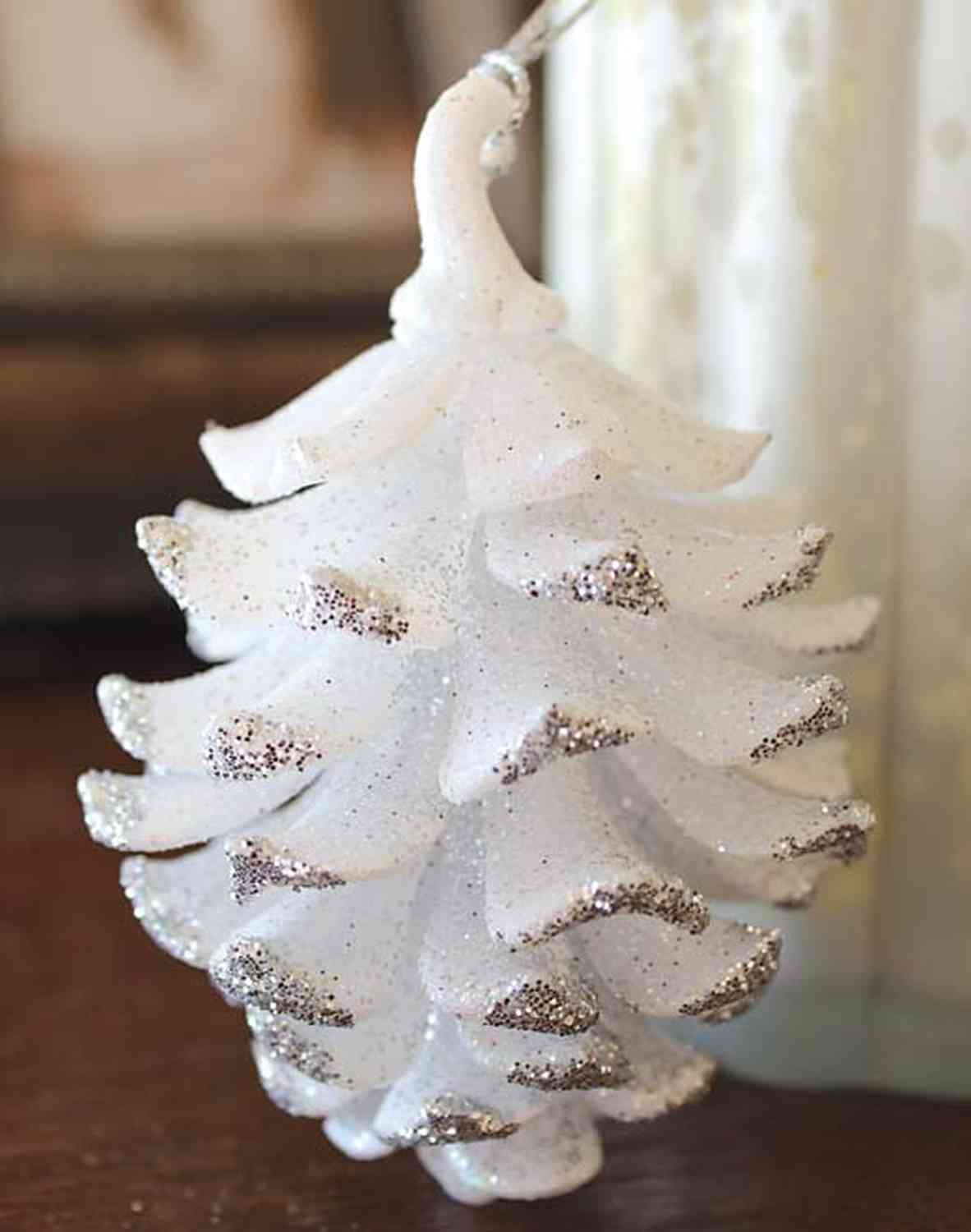 Baumschmuck Tannenzapfen CATHARINA, Acryl, Hänger, Glitzer, weiß-silber, 9cm, Ø7cm