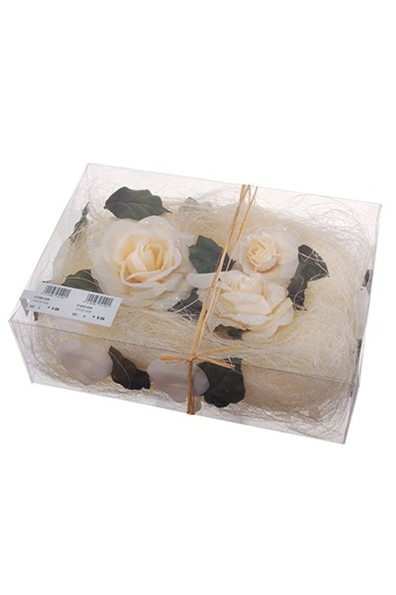 Blüten Deko ZUMA mit Rosen, Blättern, Perlen, Sisal, creme, 5cm
