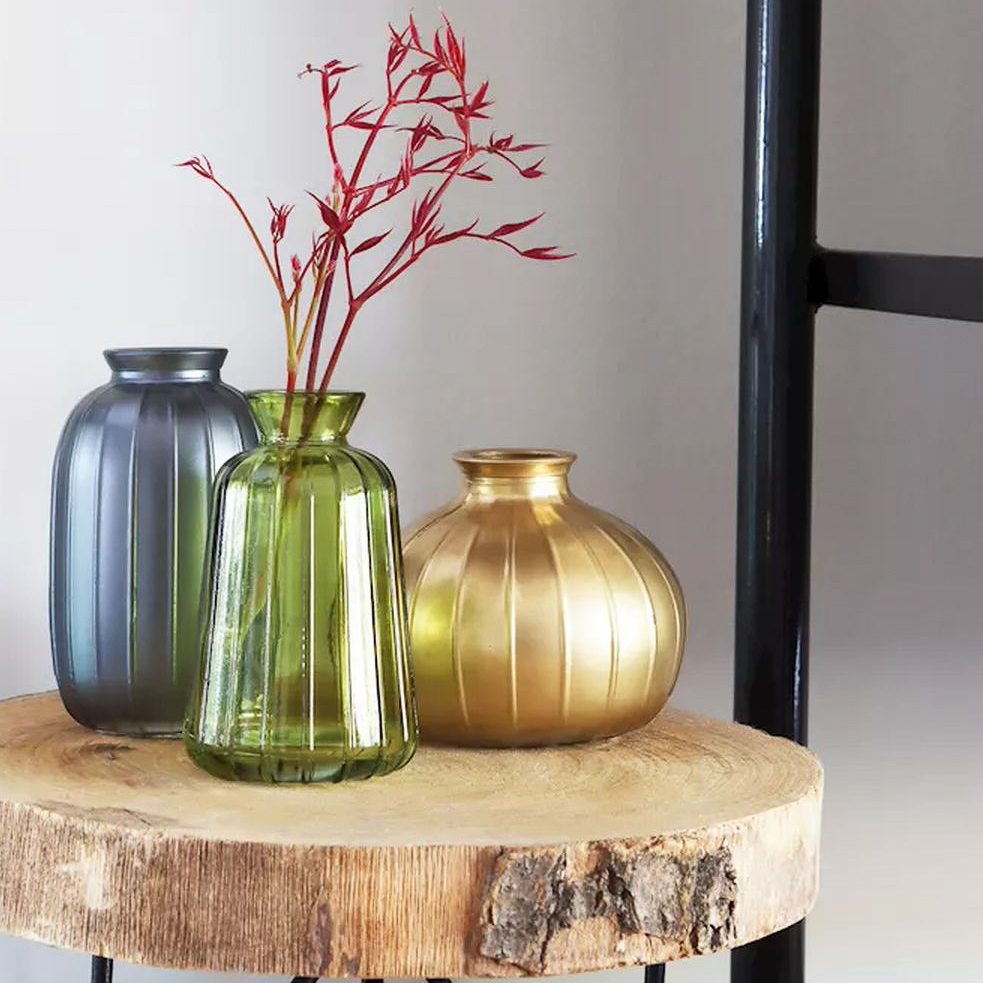 Blumen Vase ALFHARD, Glas mit Rillen, gold-metallic, 8,5cm, Ø10,5cm