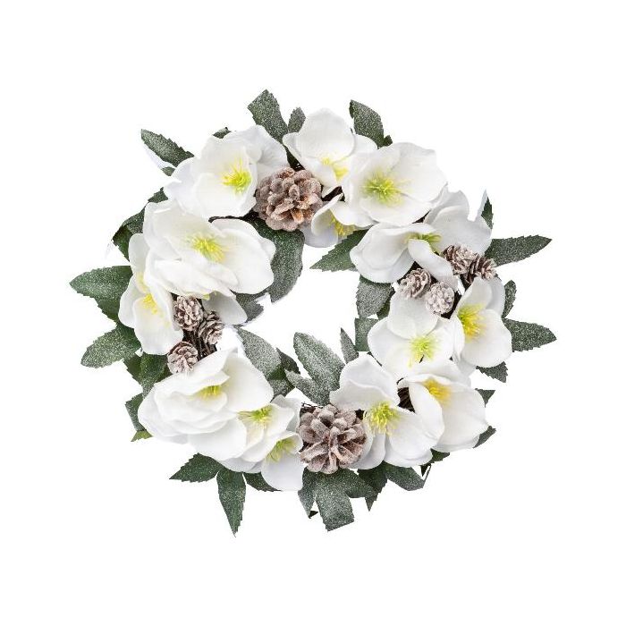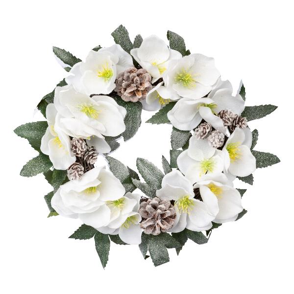 Blumenkranz Deko Christrose FOGRA, Zapfen, gefroren, weiß, Ø30cm