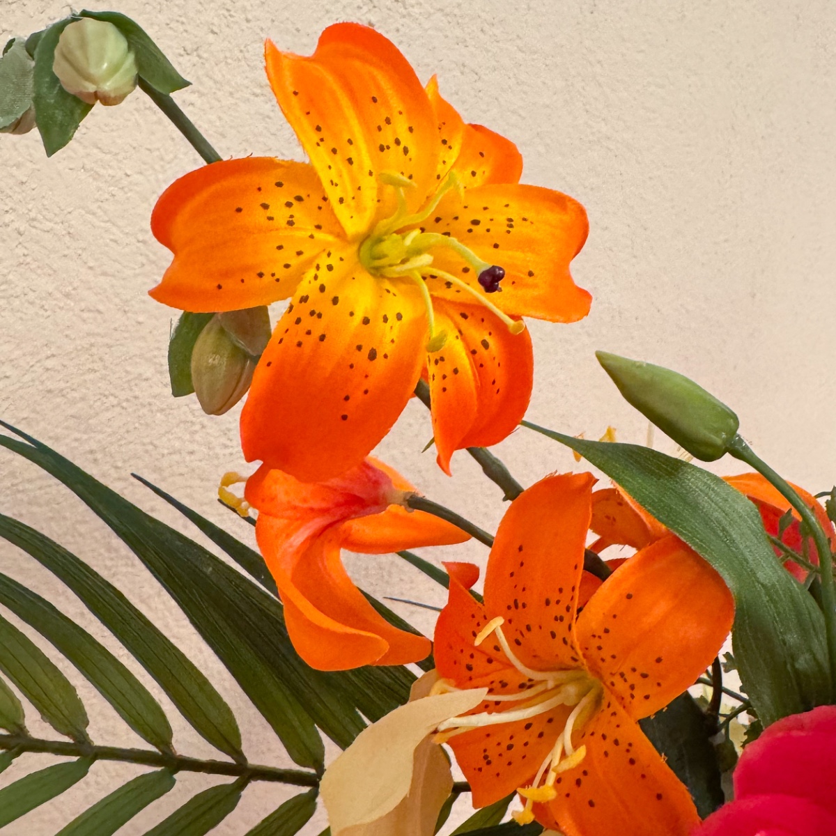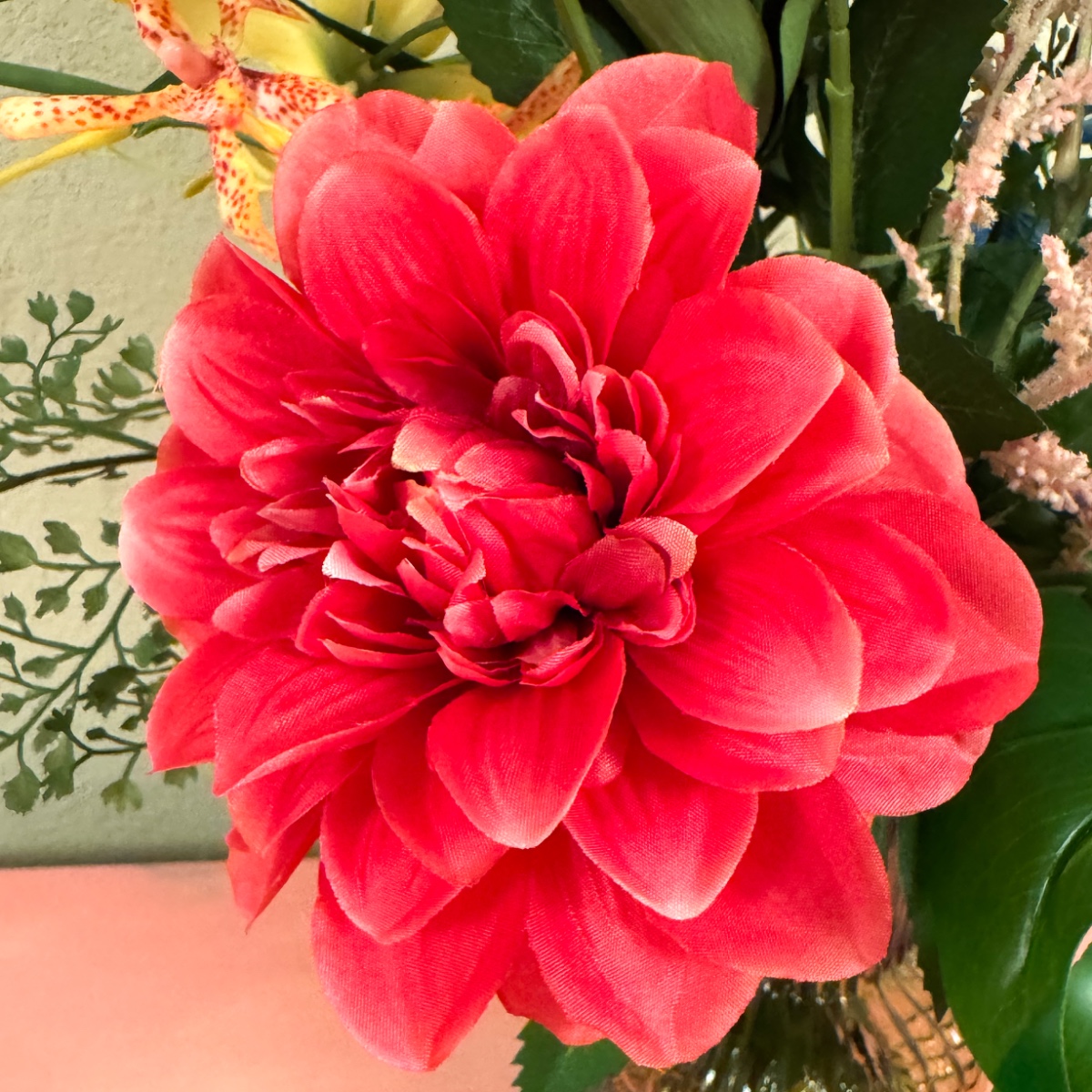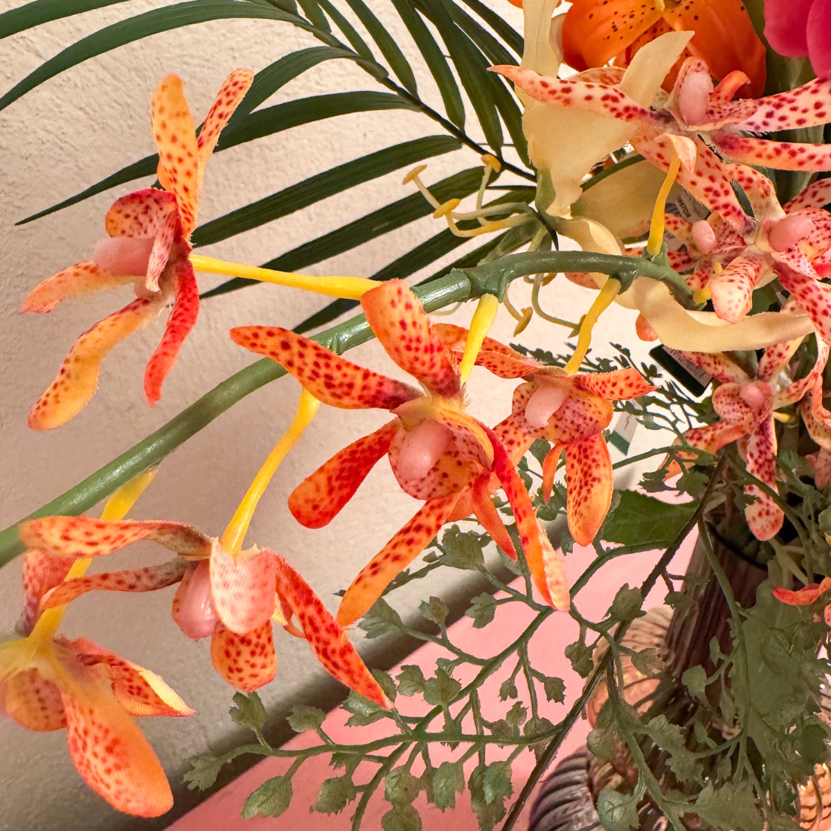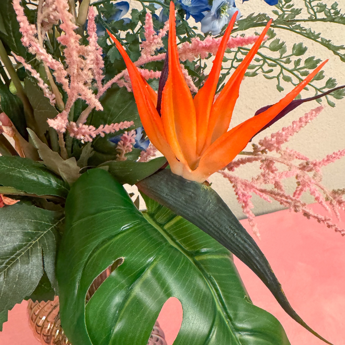 Exotic beauty! Für ein stilvoll eingerichtetes Esszimmer, geschmückt mit paradiesischen Gemälden, sollte ein Blumenstrauß entstehen, der sich harmonisch in das Gesamtbild einfügt. Farblich abgestimmt und mit feinem Gespür arrangiert, bringt er die Erinnerung an unvergessliche Urlaube dezent zum Ausdruck – ein Arrangement, das Atmosphäre schafft und den Raum mit stiller Eleganz erfüllt. Shop the Look!