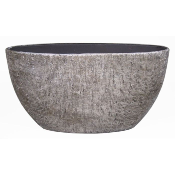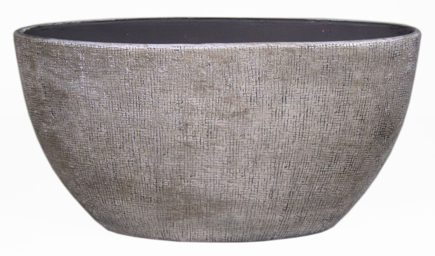 Blumentopf aus Keramik AGAPE oval mit Maserung, weiß-braun, 49x20x25cm
