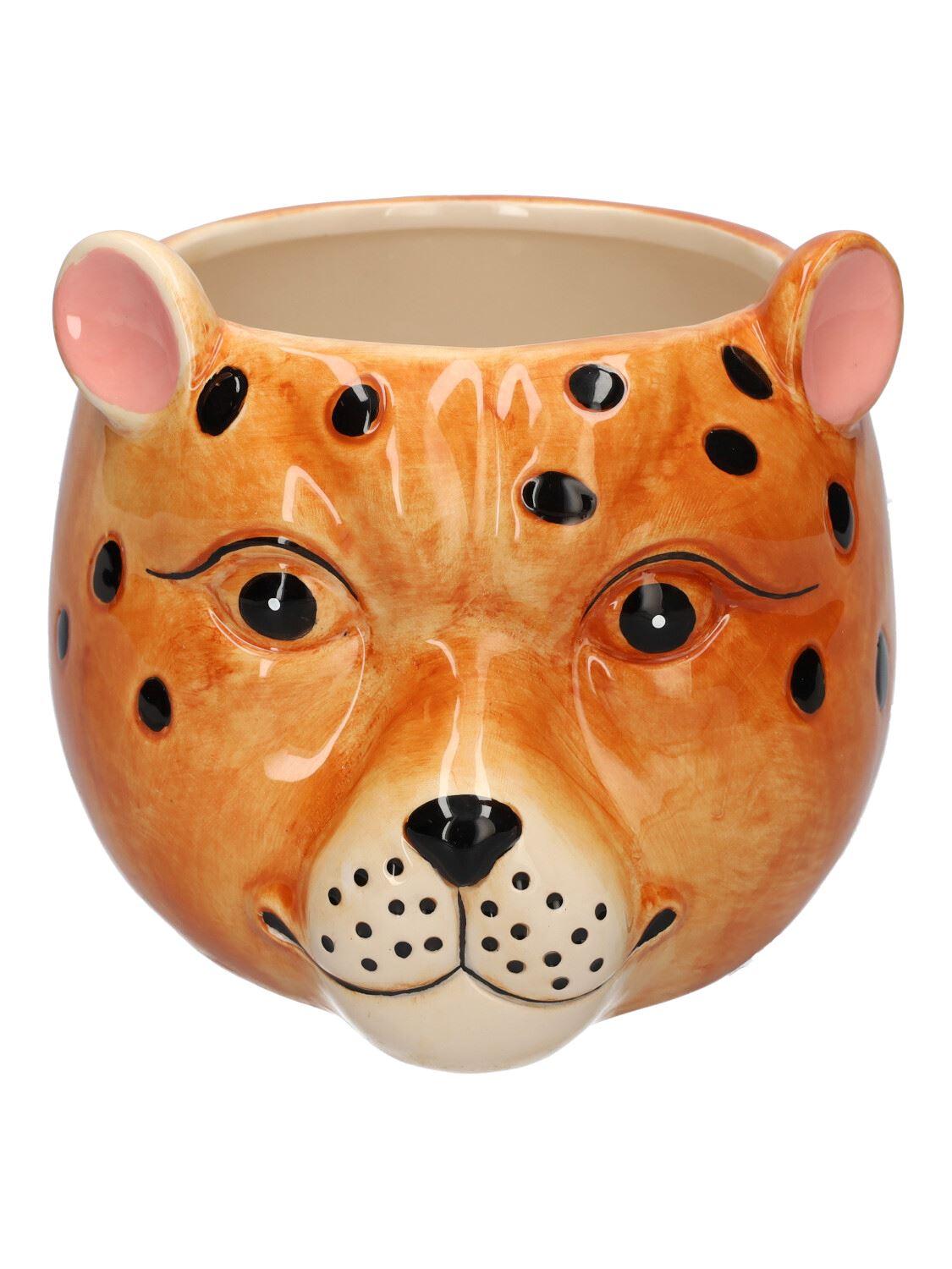 Blumentopf Leopard KIRINA aus Keramik, hellbraun-schwarz, 18,4x16,3x14,2cm