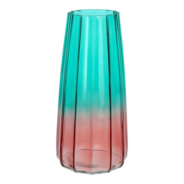 Blumenvase AMALFRIED mit Rillen, Glas, türkis-rosa, 21cm, Ø10cm