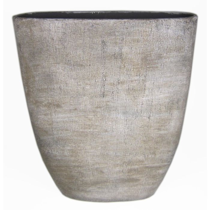 Blumenvase aus Keramik AGAPE oval mit Maserung, weiß-braun, 51x17x57cm