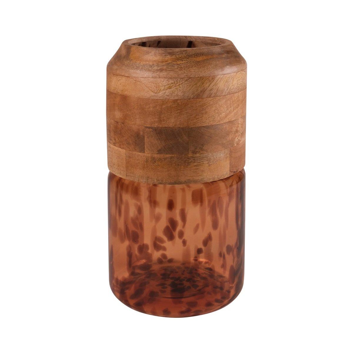 Blumenvase RUSSELL mit Mangoholz, Glas, Leopardenmuster, braun-klar, 33,5cm, Ø18cm