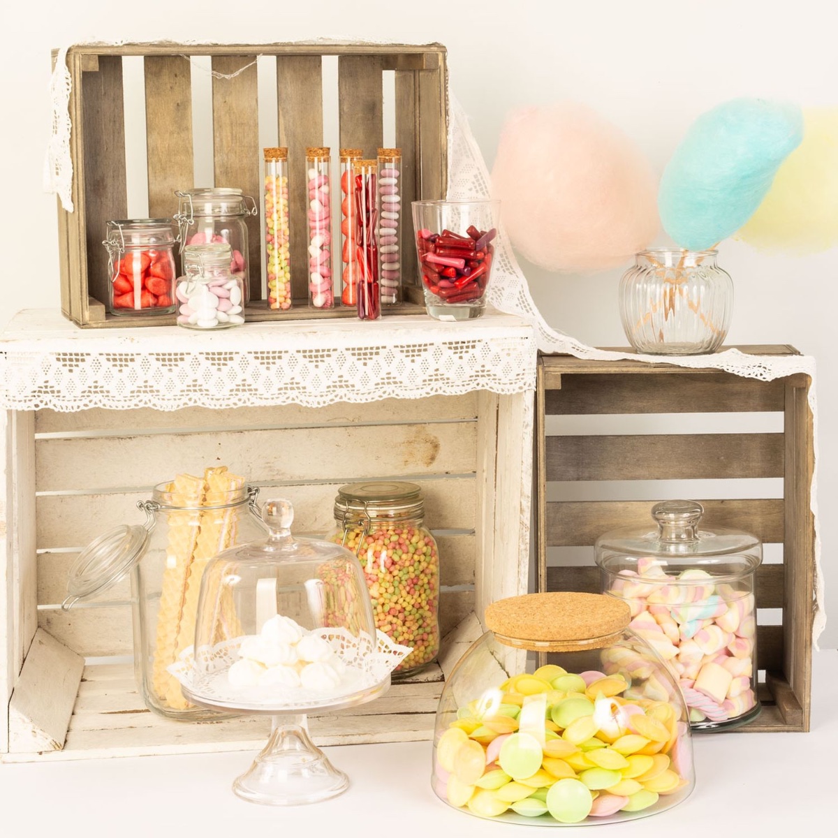 Sweets for my sweet, sugar for my honey! Eine Hochzeit ist ein wundervolles Ereignis, das man nur einmal erlebt. Wie man feiert, das bleibt jedem selbst überlassen. Jedoch kann man immer wieder Trends beobachten, die die Feierlichkeiten etwas aufpeppen und moderner machen. Zum Beispiel eine Candybar. Das steife rumsitzen und auf den Nachtisch warten war gestern. Heutzutage macht das ladende Brautpaar einfach eine Candybar, an der sich jeder Gast nach Lust und Laune bedienen kann, wenn er/sie was Süßes möchte. Das Gute daran ist, dass die Gäste so viel besser ins Gespräch kommen und sich gegenseitig besser kennenlernen. Und die Kinder haben auch einen Treffpunkt, sofern es keine Kinderecke gibt. Vorratsgläser werden mit verschiedenen Leckereien gefüllt. Hierbei gibt es keine Regeln. Das, was schmeckt wird bereitgestellt. Unsere große Auswahl an Vorratsgläsern und Serviertellern, Tortenplatten und Gläsern bietet für jede Leckerei einen passenden Behälter. Shop the Look!