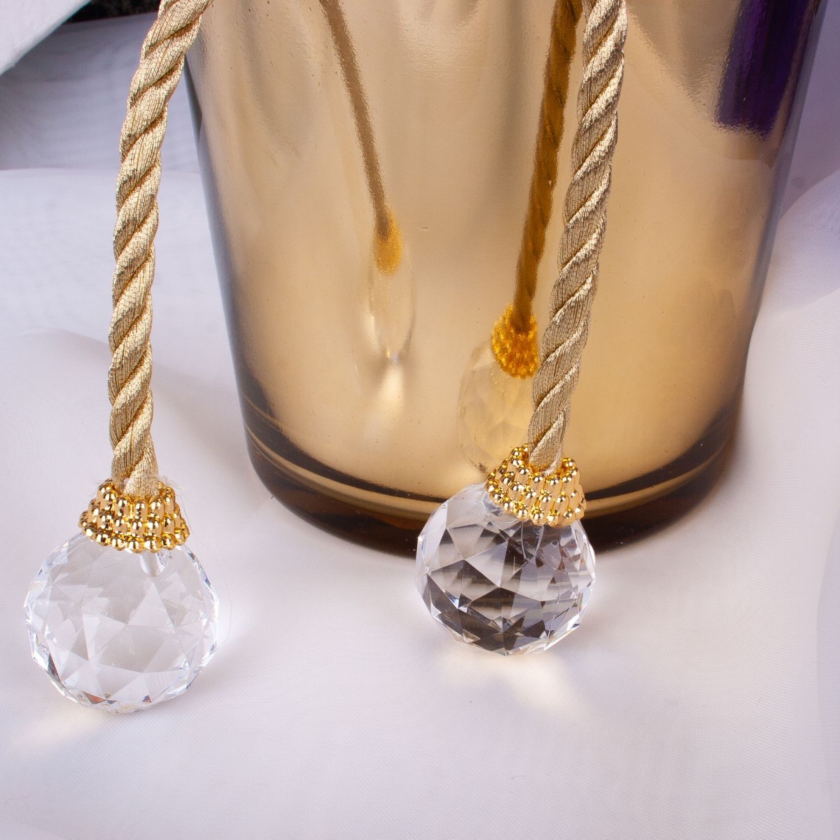 Gestaltungstipp: Zweige auf Vasengröße zuschneiden und zurechtbiegen. Die Acrylkugeln an der goldenen Kordel werden um die Vase gewickelt.