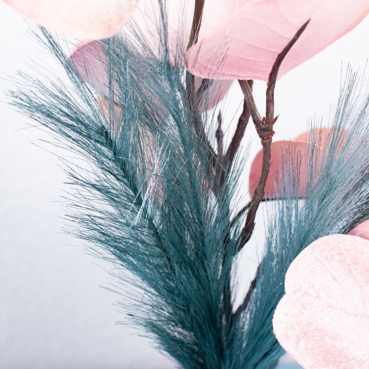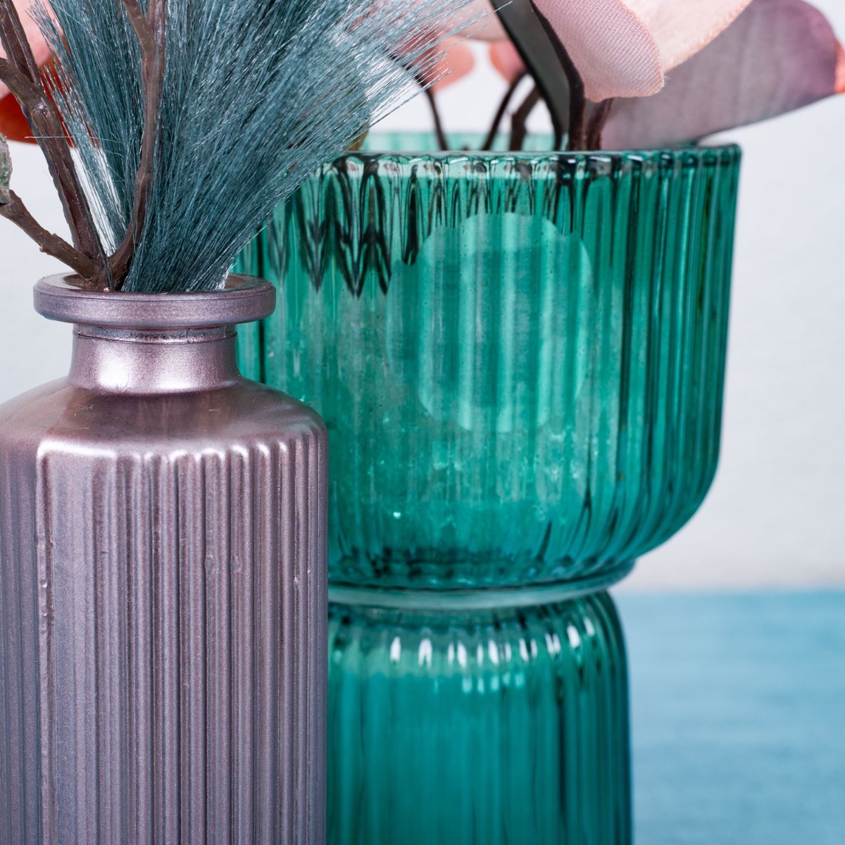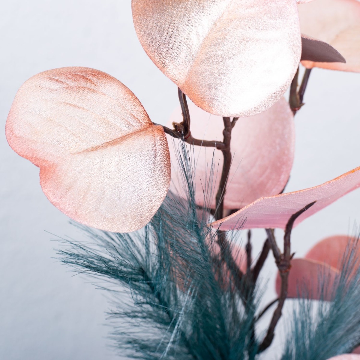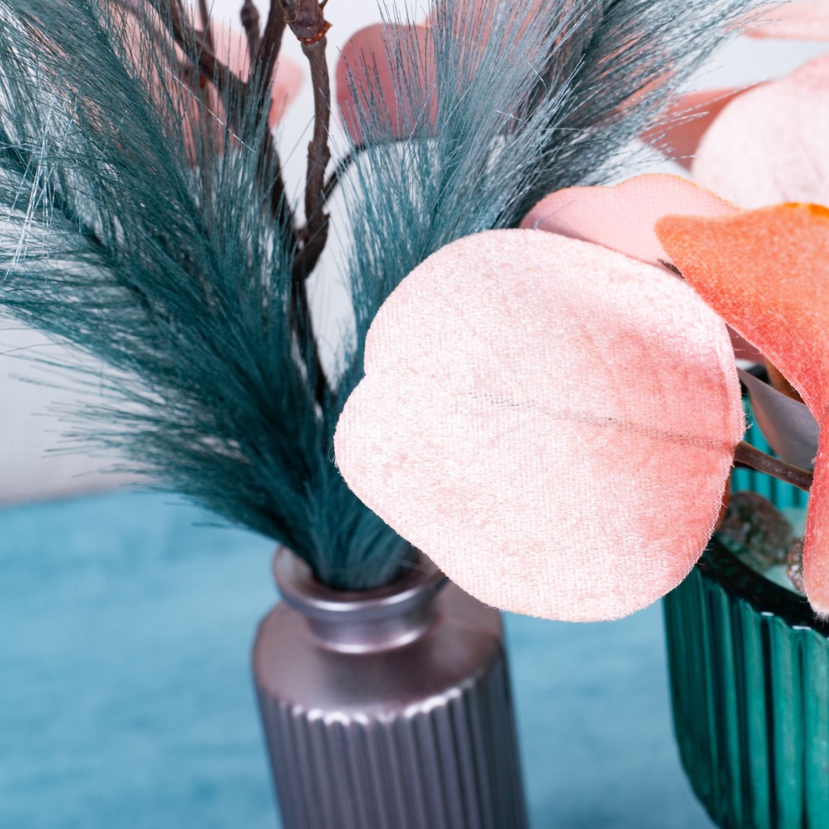 Eisiges Blau und erfrischendes Rosé! Kühle Farben können auch ein warmes Gefühl erzeugen. Der samtige Eukalyptuszweig wurde hier mit einem Federgras in einem kühlen Blau kombiniert. Heraus kommt ein romantisch und gleichzeitig kühl wirkender Look. Die kleine Flasche aus der Serie EMANUELA passt super zu der Rillenstruktur des doppelseitig nutzbaren Kerzenglases aus der Serie KENSIE welches von uns zur kleinen Vase umfunktioniert wurde. Mit Kunstblumen ist einfach alles möglich! Shop the Look!