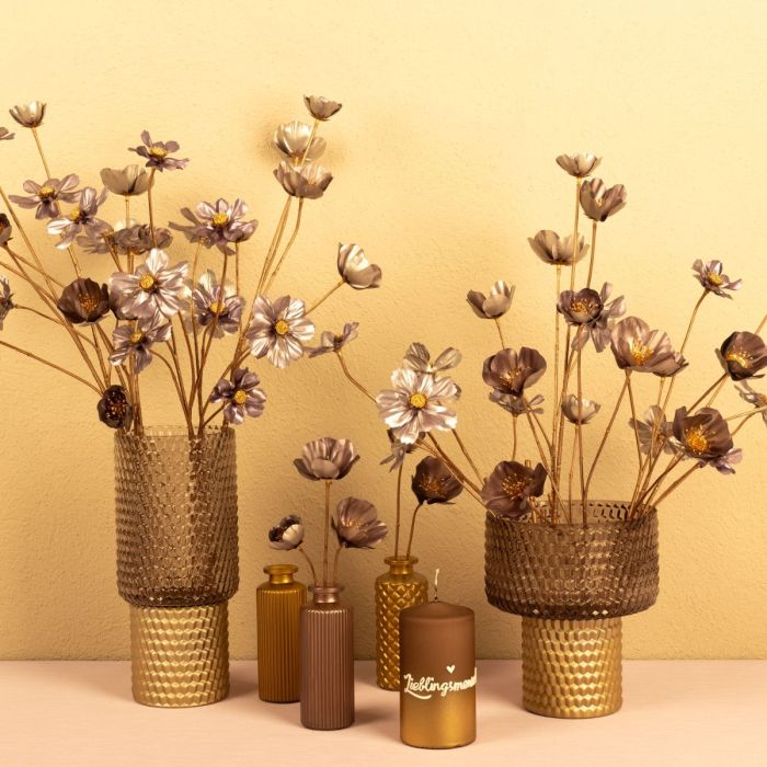 Gold und Rose! Ein edler und extravaganter Look ist hier durch den puren Glanz entstanden. Glänzend goldene Vasen und metallisch schimmernde Blüten ergeben ein zauberhaftes Bild. Das klingt doch nach einem perfekten Geschenk für den Lieblingsmenschen. Die Botschaft steht schon auf der Kerze. Shop the Look!