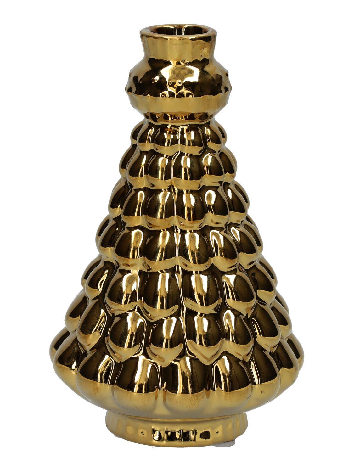 Dekoflasche Tannenbaum BRIXON, Punkte Muster, Keramik, gold-metallic, 24,5cm, Ø14cm