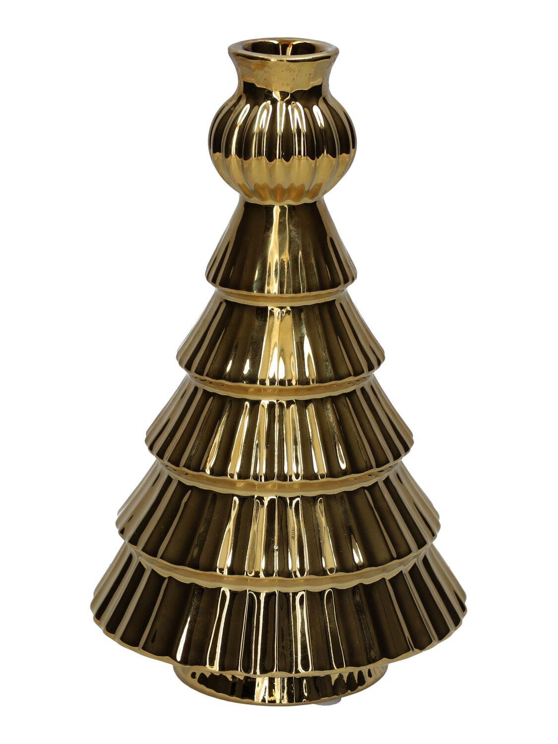 Dekoflasche Tannenbaum BRIXON, Linien Muster, Keramik, gold-metallic, 15,2cm, Ø10cm