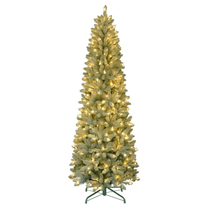 Künstlicher schmaler Weihnachtsbaum ROVANIEMI SPEED, beschneit, LEDs, 275cm, Ø90cm