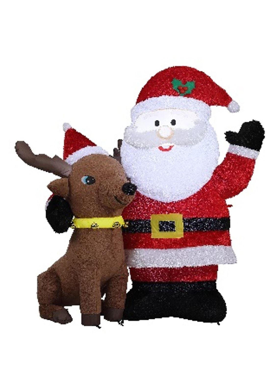 XXL Deko Weihnachtsmann Rentier SISSA, aufblasbar, plüschig, LEDs, rot-weiß-braun, 155x70x183cm