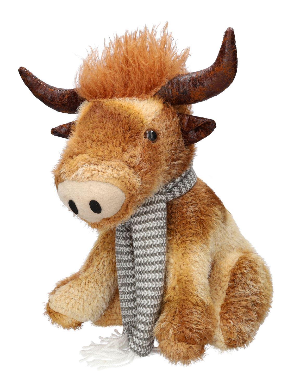 Plüschige Dekotier Stier STADEN, sitzend, braun-grau, 24x18x37cm