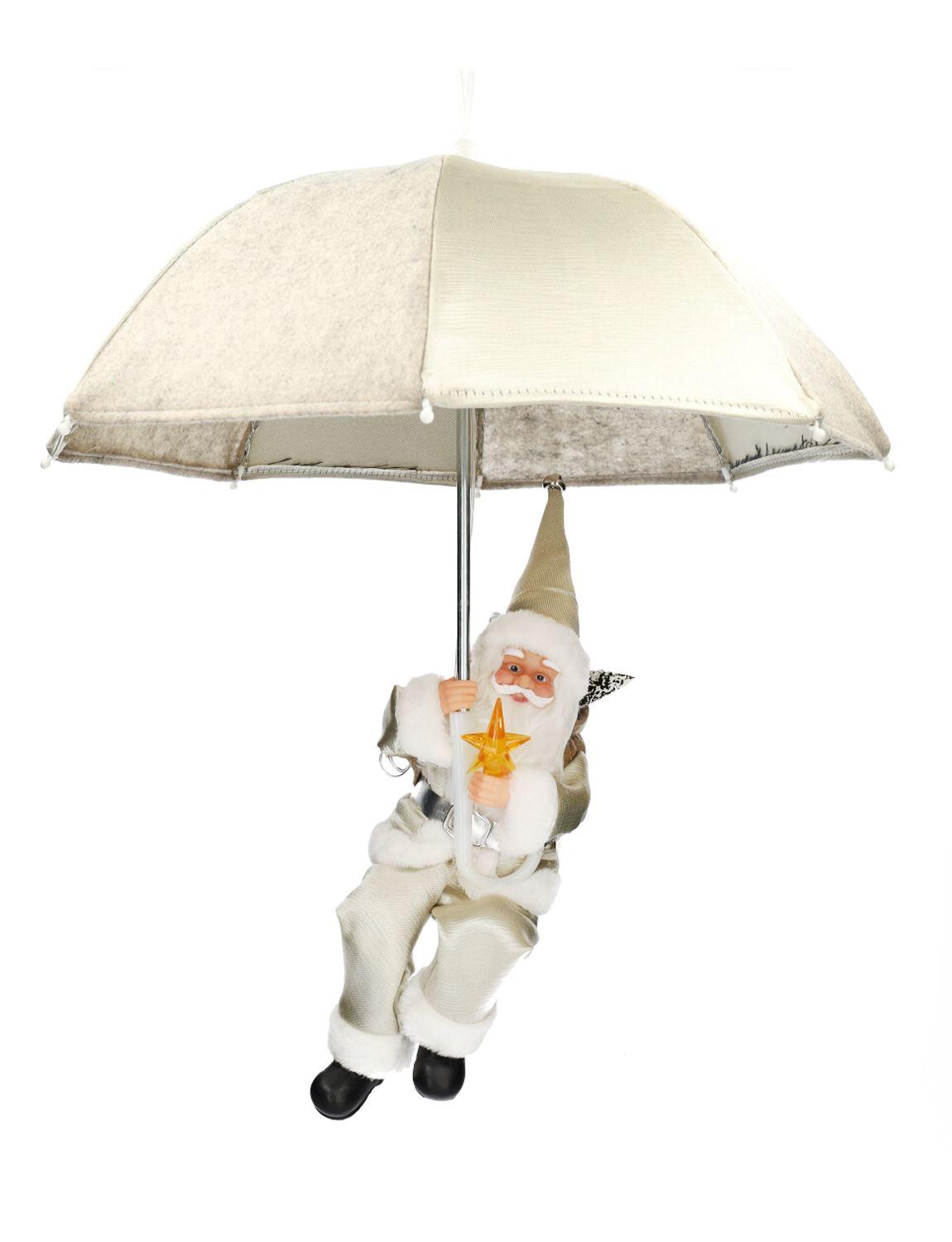 Hängender Santa Claus SISSON mit Schirm, LEDs, ivory-weiß, 60cm, Ø50cm