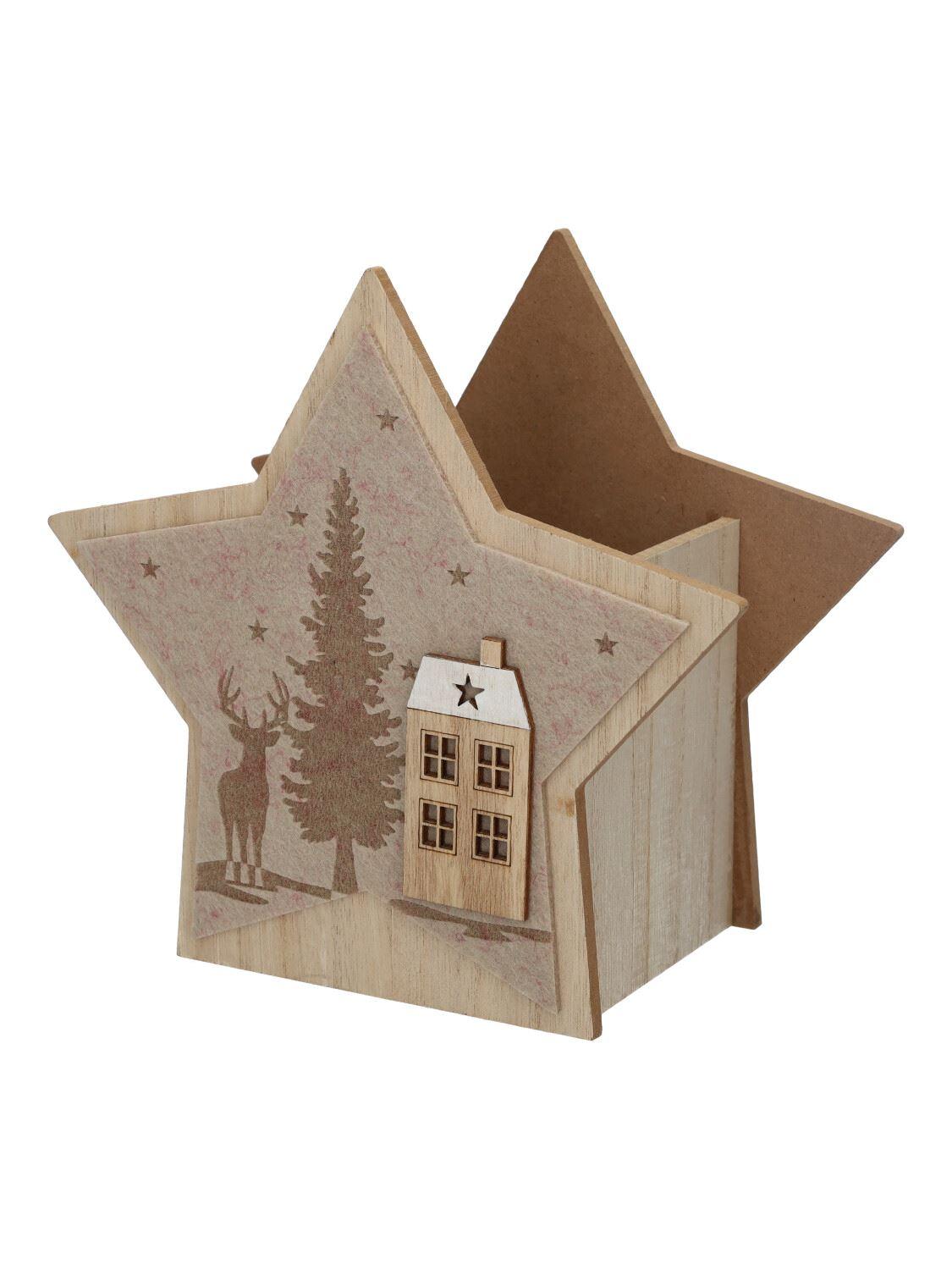 Übertopf Stern PINEY aus Holz, mit Motiv winterlich, natur, 20x10,5x18,5cm