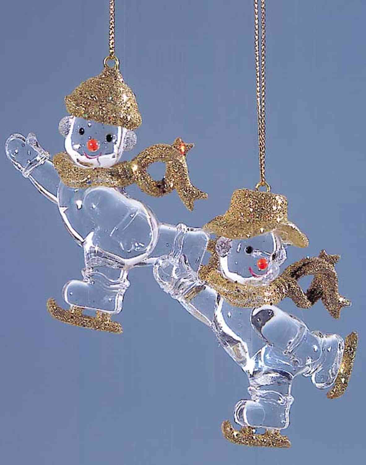 Deko Acryl Hänger Schneemann LILLA, 2 Stück, Glitzer, gold, 3x8cm