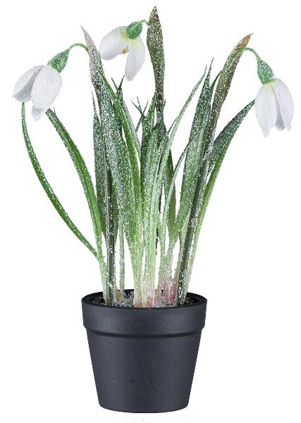 Deko Blume Schneeglöckchen WASFA im Dekotopf, beschneit, weiß, 20cm