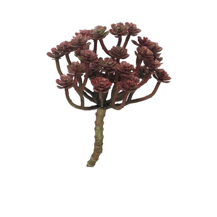Die dekorative Sukkulente ULUO in Farbe burgunderrot hat ein Maß von ca. 19 cm.