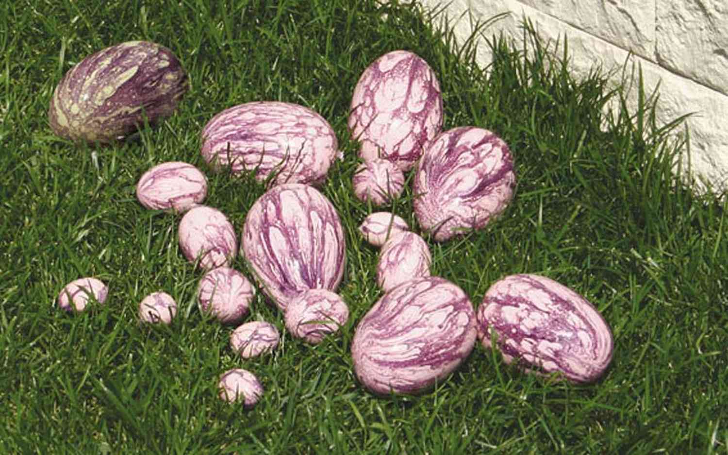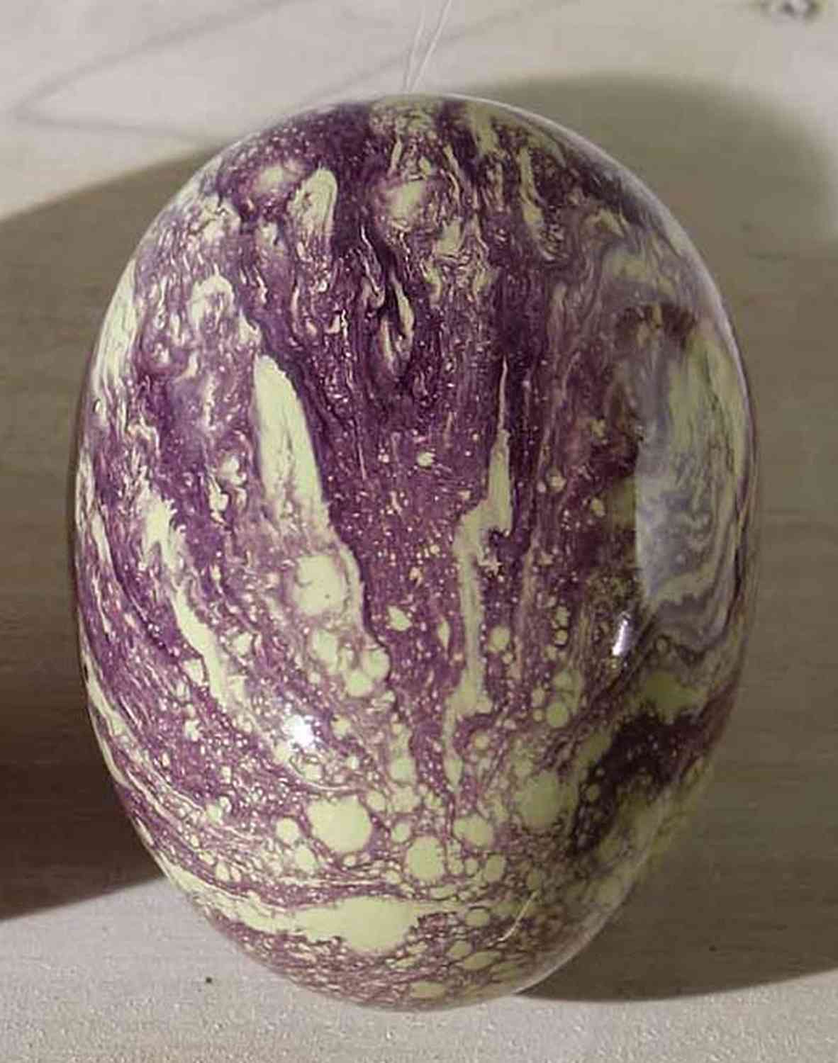 Der Osterei Hänger DUKI ist mit seiner marmorierten Oberfläche ein schöner Hingucker in Ihrem Frühlingsstrauß.