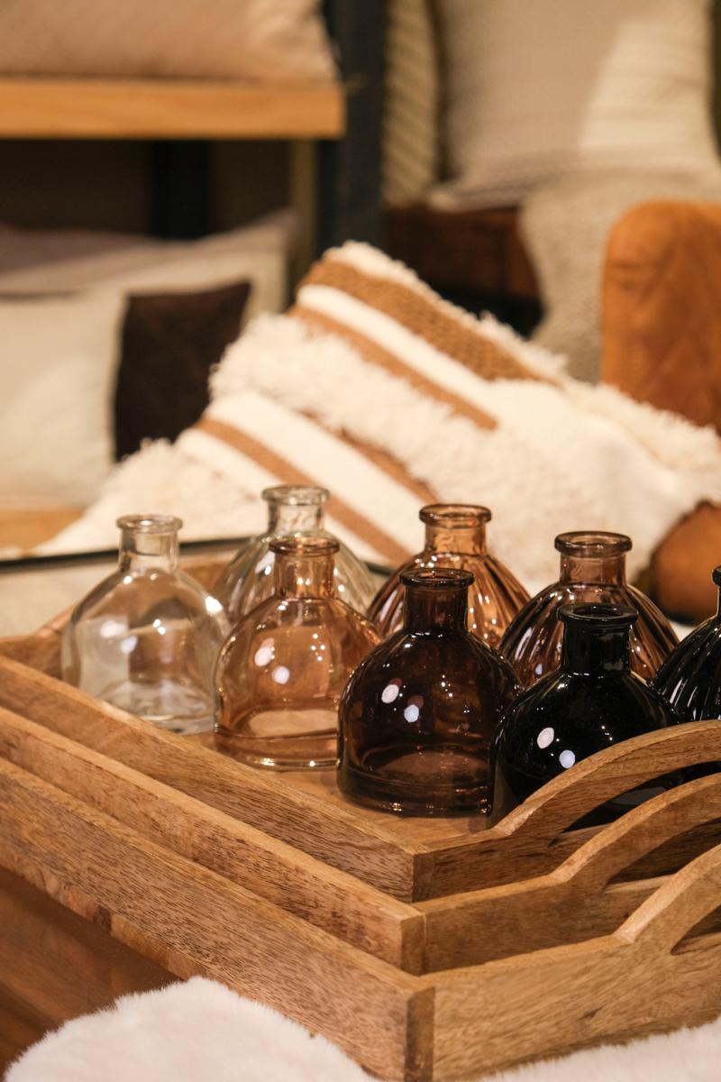 Deko Flasche MAKENZIE aus Glas, taupe-klar, 9cm, Ø8cm