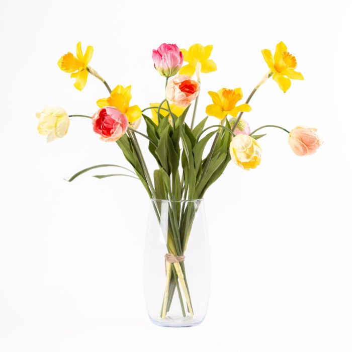 - Künstlicher Blumenstrauß ADELFA bestehend aus folgenden oder mind. gleichwertigen Produkten: Verspielte Narzisse und elegante Tulpen