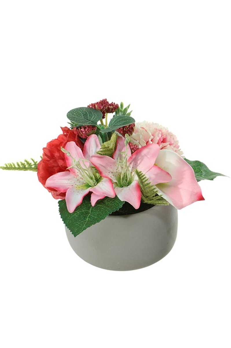 Deko Gesteck Lilie, Calla, Pfingstrose, Nelke ALFARA, Dekotopf, rosa-creme-rot, 19cm, Ø20cm