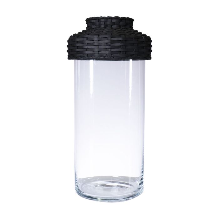 Deko Glasvase JINTANA mit Rattan Haube oder Fuß, klar-schwarz, 45cm, Ø18,5cm