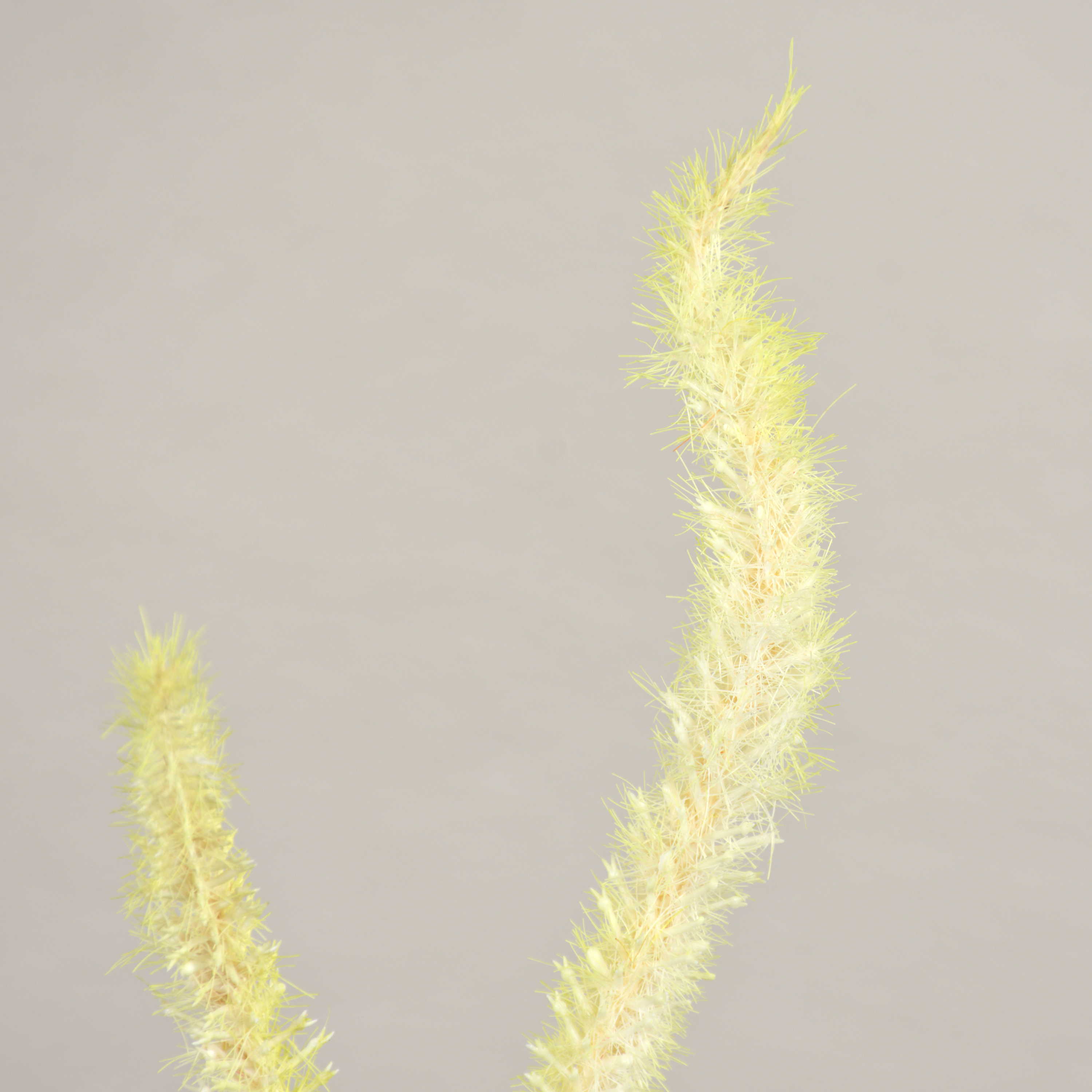 - Mit langen schmalen Rispen aus beflockten Kunststoff und Textilblättern