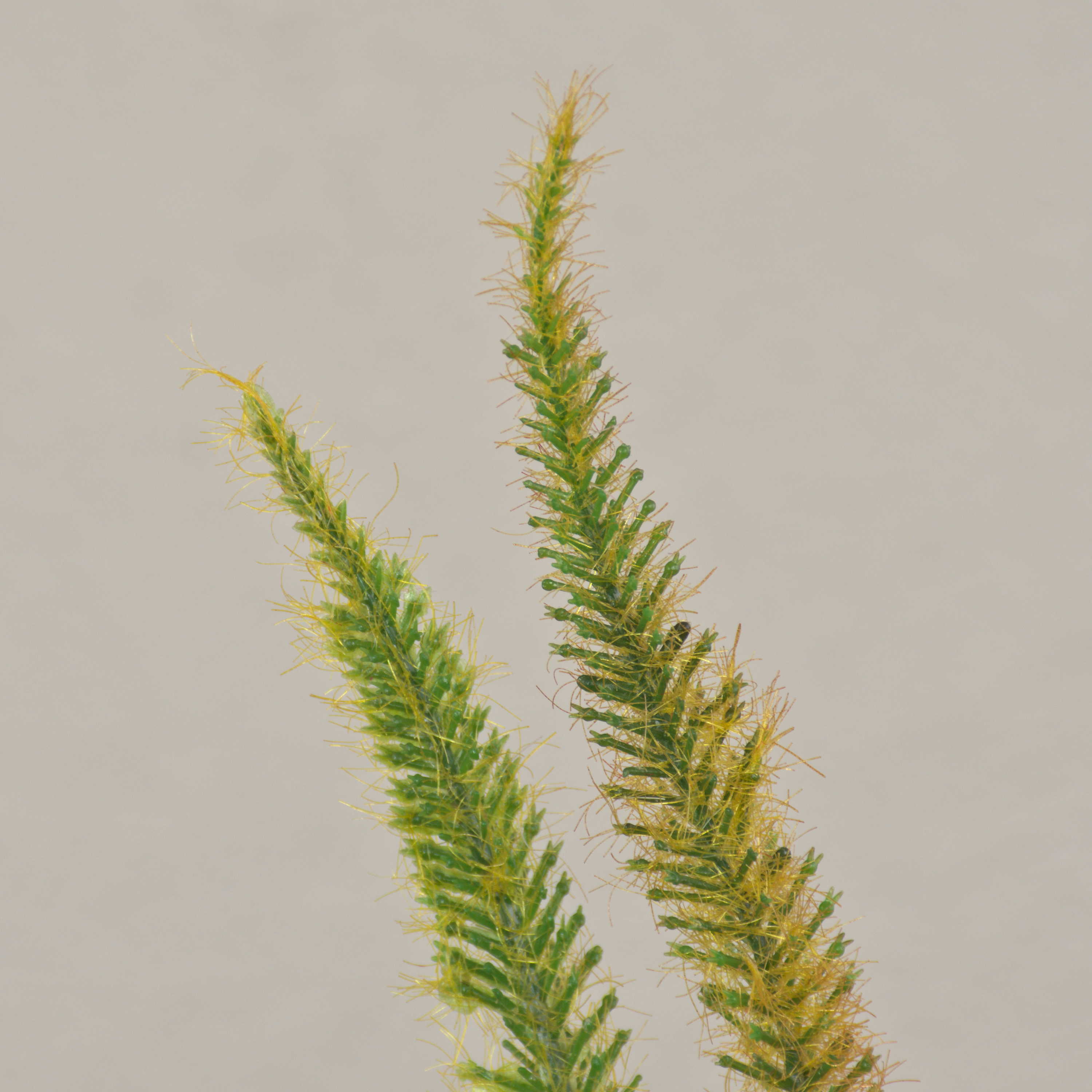 - Mit langen schmalen Rispen aus beflockten Kunststoff und Textilblättern