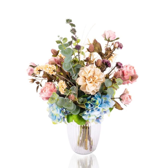 Eine Vielzahl an zarten Blüten umschmeicheln die üppigen Hortensienköpfe des herbstlichen Straußes TRIANA. Das Farbzusammenspiel ist absolut harmonisch und die Freude auf den Herbst wird geweckt. Die Wärme, die der Blumenstrauß mit seinen Farben repräsentiert bringt Gemütlichkeit in ihr zu Hause. Ihr gedeckter Tisch wird mit dem Herbststrauß komplementiert, durch die naturgetreue Darstellung der Blüten, wird man die Blumen kaum von echten unterscheiden können.