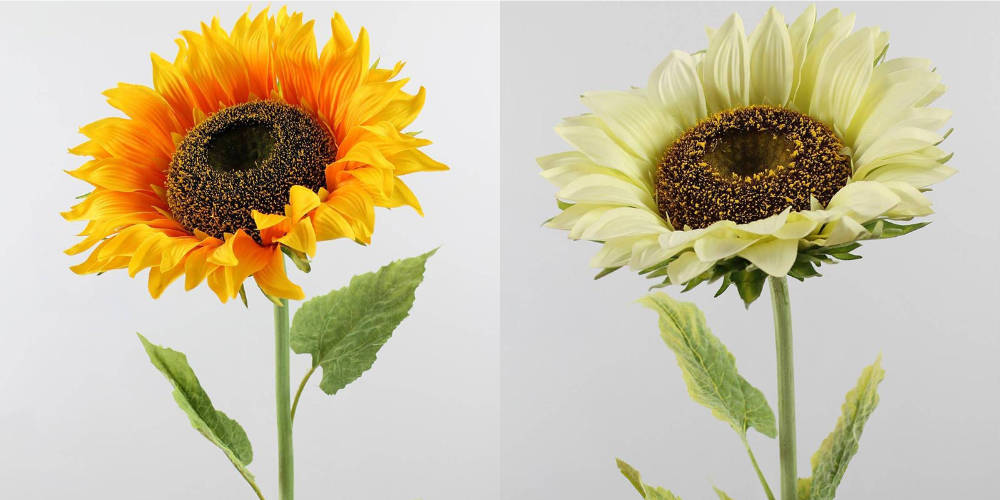 Die Gattung der Sonnenblumen umfasst dabei 67 verschiedene Arten! D.h. Sonnenblumen gibt es in einer erstaunlichen Vielfalt: einjährig und mehrjährig, von 20 cm kleinwüchsig für Blumentöpfe oder Blumenkästen bis über fünf Metern Wuchshöhe für die Beetbepflanzung. Und es gibt die unterschiedlichsten Blütenfarben und -größen, sowie Wuchsformen, für jede Deko-Situation gibt es eine passende Blume. In Europa ist dabei die „Gewöhnliche Sonnenblume“ (Helianthus annuus) am verbreitetsten. Sie weist eine Wuchshöhe von ca. einem oder zwei Meter und eher selten 3 Meter auf.