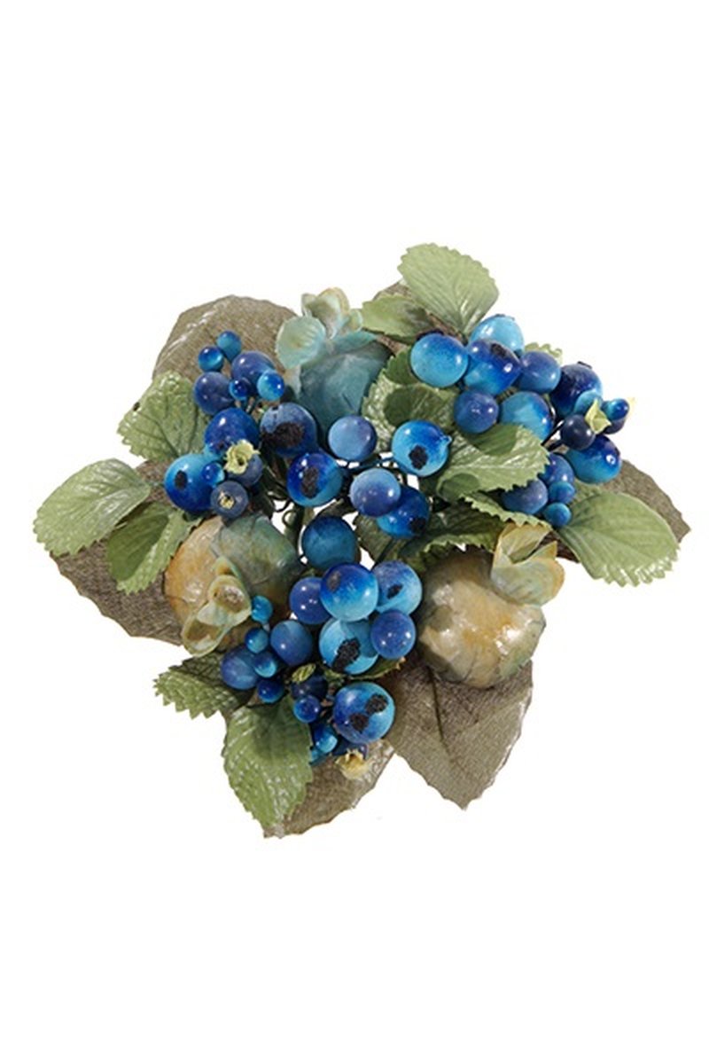 Deko Kerzenkranz STELLAN mit Schneebeeren, Knospen, blau-grün, Ø10cm