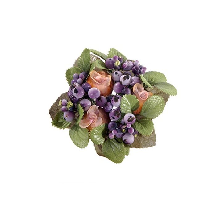 Deko Kerzenkranz STELLAN mit Schneebeeren, Knospen, lila-lachs, Ø10cm